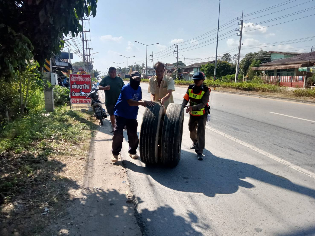 วันที่ 1 มกราคม 2568 ร.ต.ต.ชิตโชคพัฒน์ เดชนอก รอง สว.(ป.) สภ.ดอยหล่อ ปฏิบัติหน้าที่สายตรวจตำบล( ตู้ยามแม่ขาน) พร้อมด้วยอาสาจราจร ตรวจสอบอุบัติเหตุ รถสิบล้อพวงล้อหลุด เป็นรถบรรทุกขยะ ที่หมู่ 8 ต.สองแควไม่มีผู้ได้รับ บาดเจ็บ ทรัพย์สินทางราชการไม่ได้รับความเสียหาย ได้ประสานเจ้าของรถเรื่องการติดตั้งไฟเพื่อป้องกันการเกิดอุบัติเหตุซํ้าซ้อน เจ้าของรถรับจะดำเนินการก่อนคํ่า