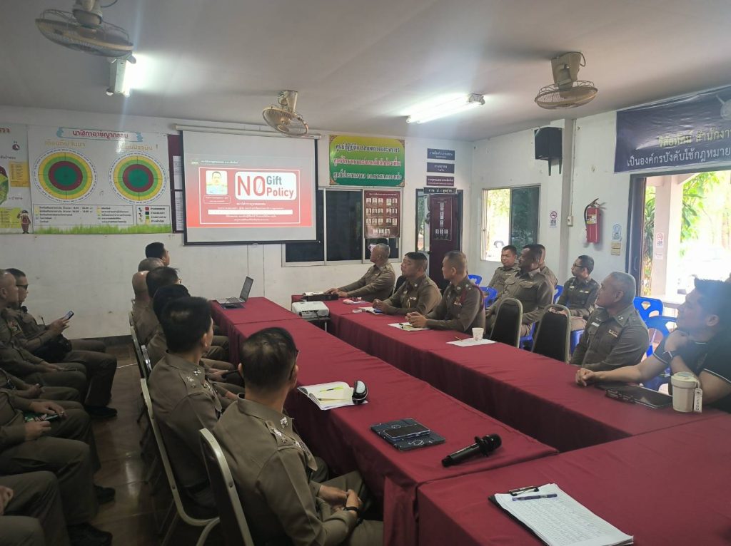 พ.ต.อ.ยุทธการ เมธา ผกก.สภ.ดอยหล่อ , พ.ต.ท.กฤตมนูสิน สุรินรังษี รอง ผกก.ป.ฯ , พ.ต.ท.วิษณุ บุญมา รอง ผกก.สส.ฯ พร้อมข้าราชการตำรวจ สภ.ดอยหล่อ ร่วมประชุมประจำเดือน ชี้แจงข้อราชการ และมอบนโยบายจากผู้บังคับบัญชา การประกาศนโยบายการไม่รับสิ่งของหรือสิ่งตอบแทน No Gift Policy