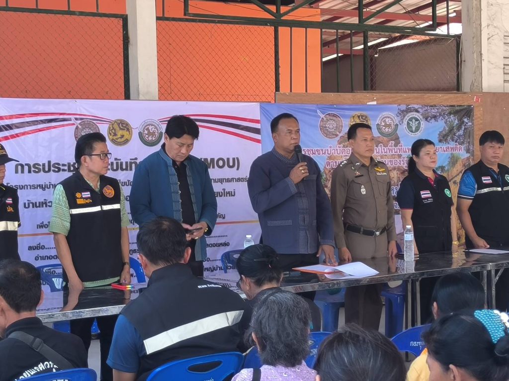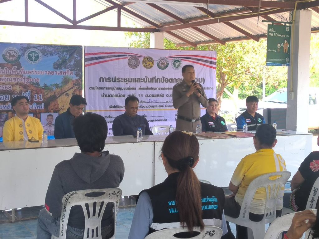 นายมานิตย์ ไหวไว นายอำเภอจอมทอง เป็นประธานเปิดโครงการดำเนินงานตำบลยั่งยืน เพื่อแก้ไขปัญหายาเสพติดแบบครบวงจรตามยุทธศาสตร์ชาติ ประจำปีงบประมาณ พ.ศ.2568 และร่วมทำบันทึกข้อตกลง (MOU) กับสถานีตำรวจภูธรดอยหล่อ สาธารณสุขอำเภอดอยหล่อ องค์การบริหารส่วนตำบลดอยหล่อ หมู่บ้านห้วยโจ้ หมู่ที่ 5 และบ้านดอยน้อย หมู่ที่ 11 ตำบลดอยหล่อ โดยมี พ.ต.อ.ยุทธการ เมธา ผู้กำกับสถานีตำรวจภูธรดอยหล่อ นายกองค์การบริหารส่วนตำบลดอยหล่อ สาธารณสุขอำเภอดอยหล่อ ปลัดอำเภอ เจ้าหน้าที่อส. เจ้าหน้าที่ตำรวจ อาสาสมัครสาธารณสุขตำบลดอยหล่อ และประชาชนในพื้นที่เป้าหมาย ร่วมพิธีเปิด ณ หอประชุมบ้านห้วยโจ้ และหอประชุมบ้านดอยน้อย ตำบลดอยหล่อ อำเภอดอยหล่อ จังหวัดเชียงใหม่